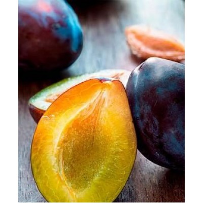 Мякоть желтого цвета, сочная, сладкая на вкус. Спелые сливы округлой формы с не большой косточкой, которую трудно отделить от мякоти.